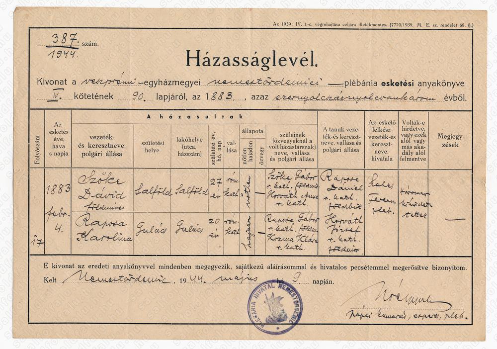 Salföld történelmi archívumának online tartalma a Nemzeti Kulturális Alap Igazgatósága támogatásával jött létre.